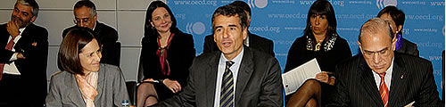 Le ministre des finances chilien Andrés Velasco, a reçu hier à Paris la lettre d’invitation des mains du Secrétaire général de l’Organisation de Coopération et Développement Économiques (OCDE), Angel Gurría.
