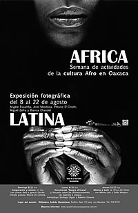 Mi proyecto tomaba aun más sentido. Busqué entonces el modo de revalorizar el vínculo intrínseco con Africa que comparten México y América Latina. Así nació “África Latina”. El objetivo era expresar la multiculturalidad oaxaqueña desde sus raíces africanas, mediante una exposición colectiva de esculturas y fotografías de "afros" de la Costa Chica y de negros de África. Junto a ello, danzas, proyección de un documental y un debate con el realizador.