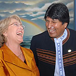 17 septembre 2008Un soutien sans faille au "gouvernement constitutionnel du président Evo Morales dont le mandat a été ratifié par une large majorité lors du récent référendum", le rejet de tout ce qui pourrait "mettre en cause l’intégrité territoriale de la Bolivie" et un "appel au dialogue" pour trouver une "solution durable", ont accordé à l’unanimité les pays de l’UNASUR réunis lundi 15 mai à Santiago. Écoutez Michelle Bachelet lire et commenter la Déclaration de Santiago (en espagnol).